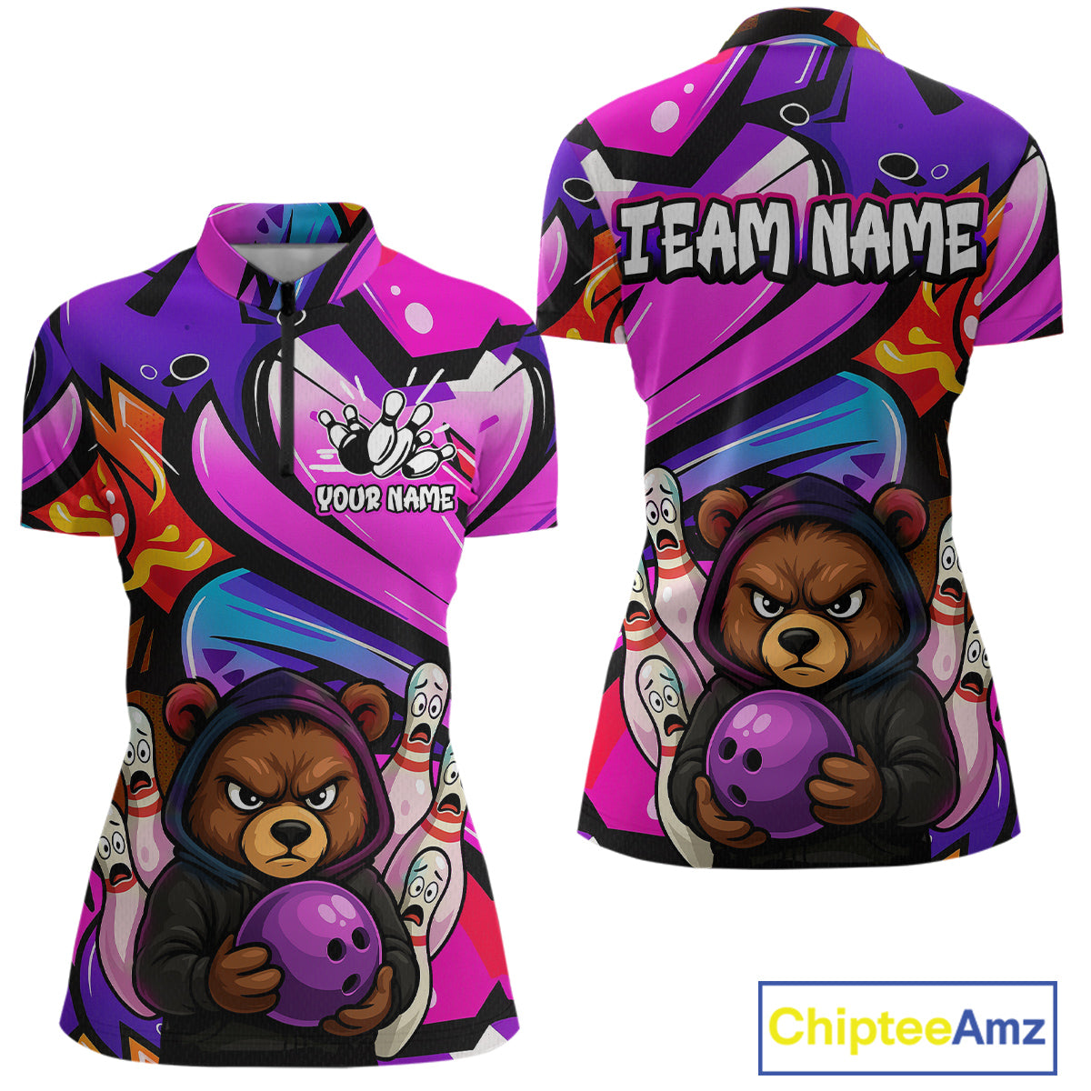Custom Funny Bear Bowling Women Bowling Shirt Polo & Quarter-Zip Bowling Team Jerseys HNT84
