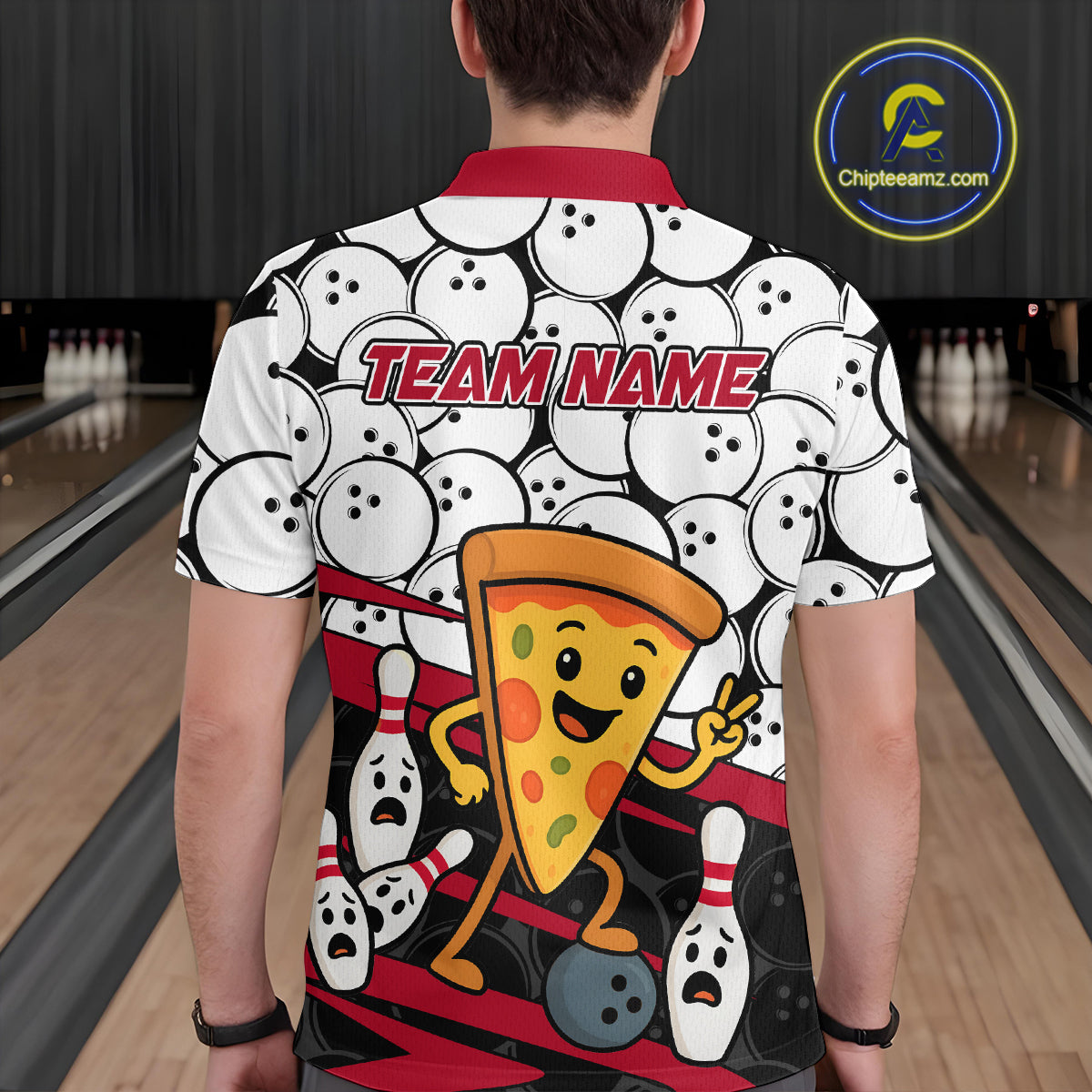 Custom Red Funny Pizza Bowling Shirt Bowling with Food for Men Polo Bowling Jersey QZT799