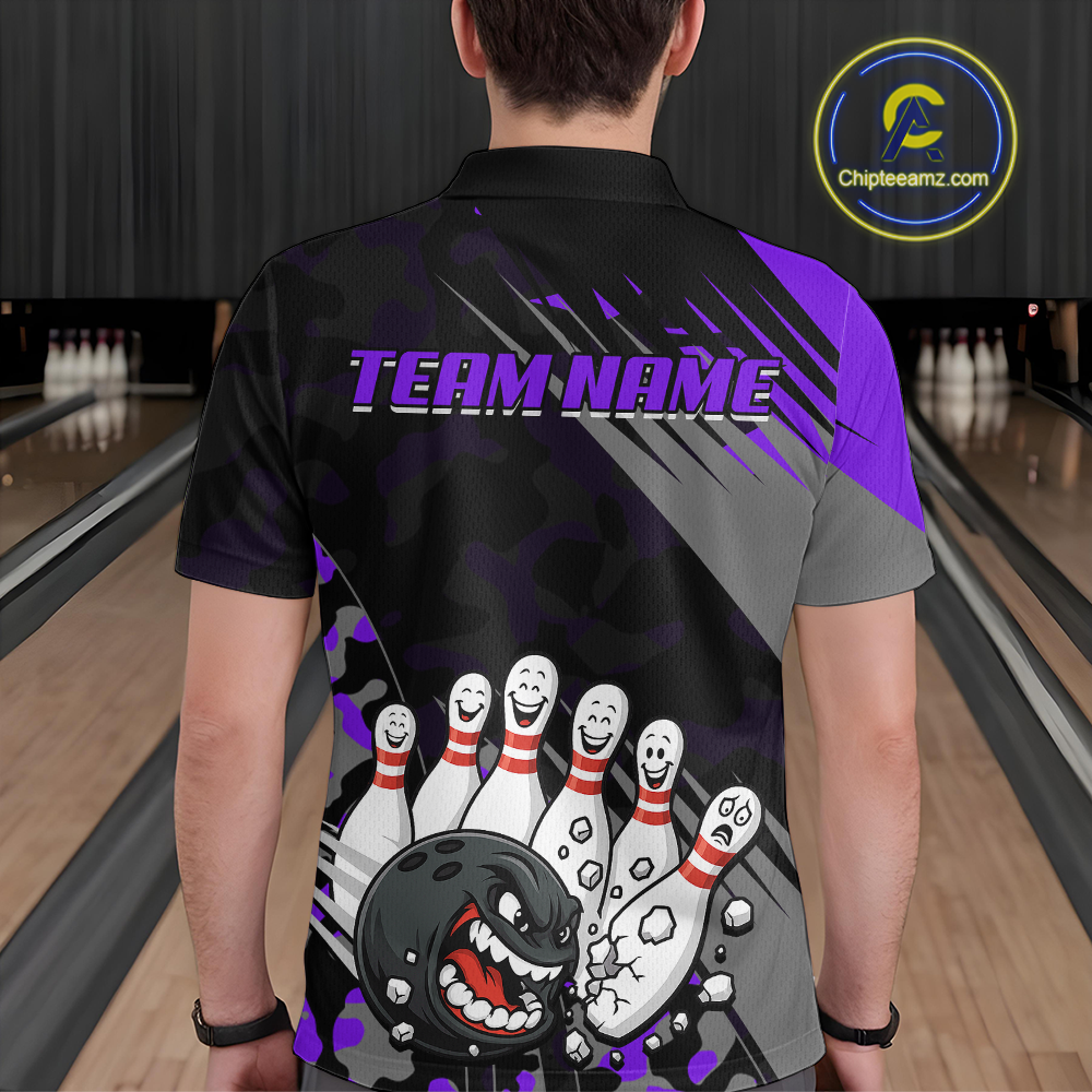 Custom Purple Funny Bowling Shirt Crazy Bowling Jersey Men Polo & 1/4 Zip Bowling Outfit QZT785