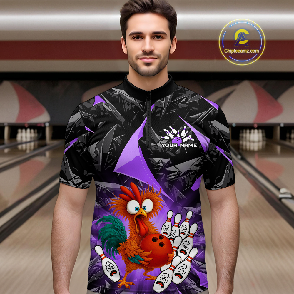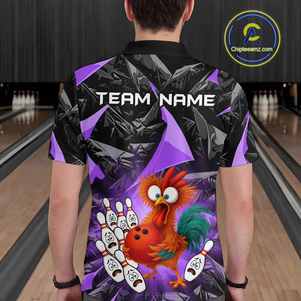 Custom Purple Funny Chicken Bowling Jersey for Men Bowling Team Shirts  Polo & 1/4 Zip HNT138