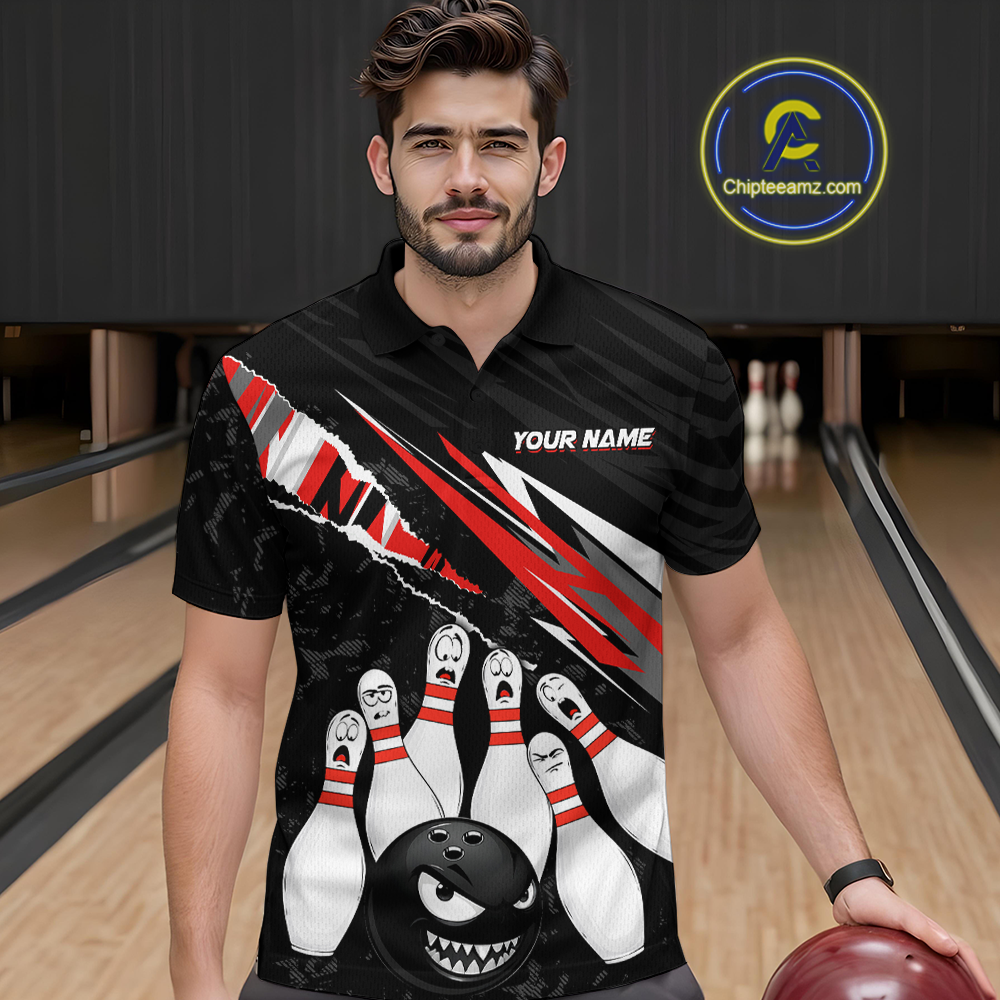 Custom Red Funny Bowling Jersey for Men Bowling Uniform Polo & 1/4 Zip Bowling Team Shirts HNT128