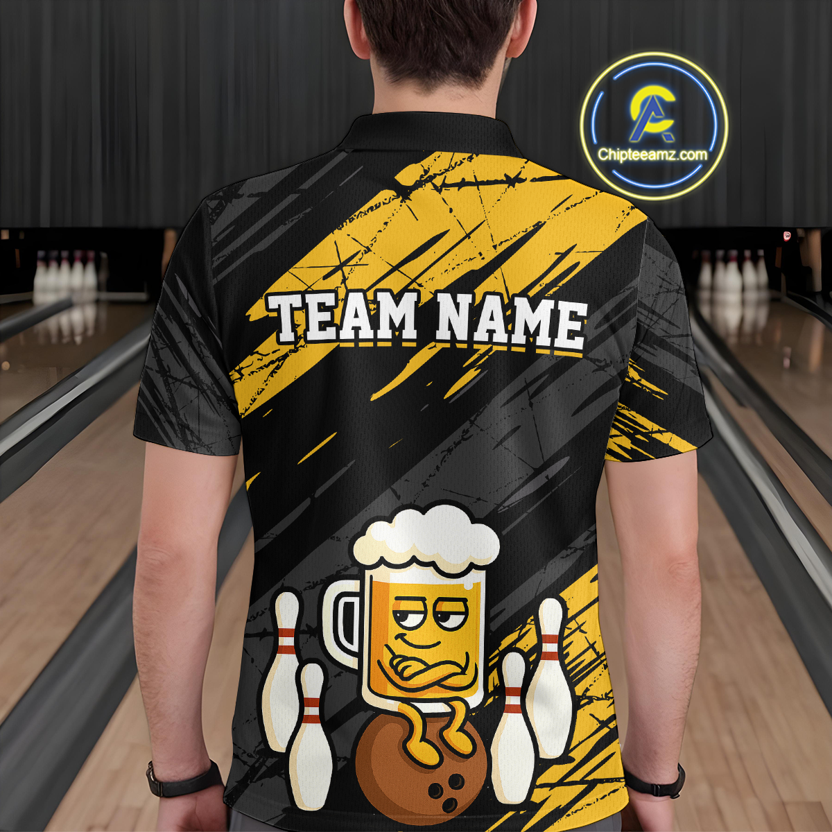 Custom Funny Beer Bowling Jersey for Men Bowling Uniform Polo & 1/4 Zip Bowling Team Shirts HNT107
