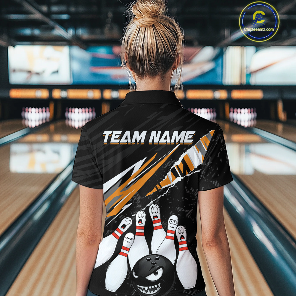 Custom Orange Funny Bowling Jersey for Women Bowling Uniform Polo & 1/4 Zip Bowling Team Shirts HNT128