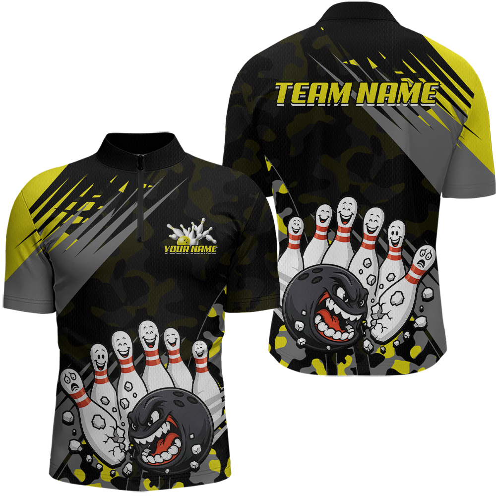 Custom Yellow Funny Bowling Shirt Crazy Bowling Jersey Women Polo & 1/4 Zip Bowling Outfit QZT785