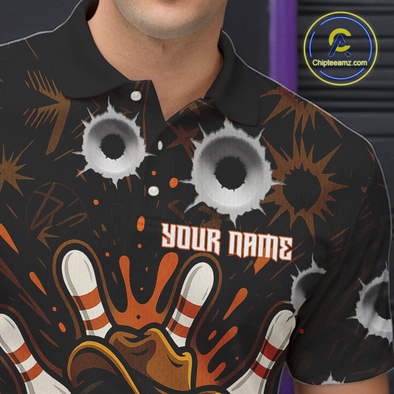 Funny Black and Orange Bowling Cowboy gun Men bowling polo, 1/4 zip shirts Custom bowling team jersey NQS10688