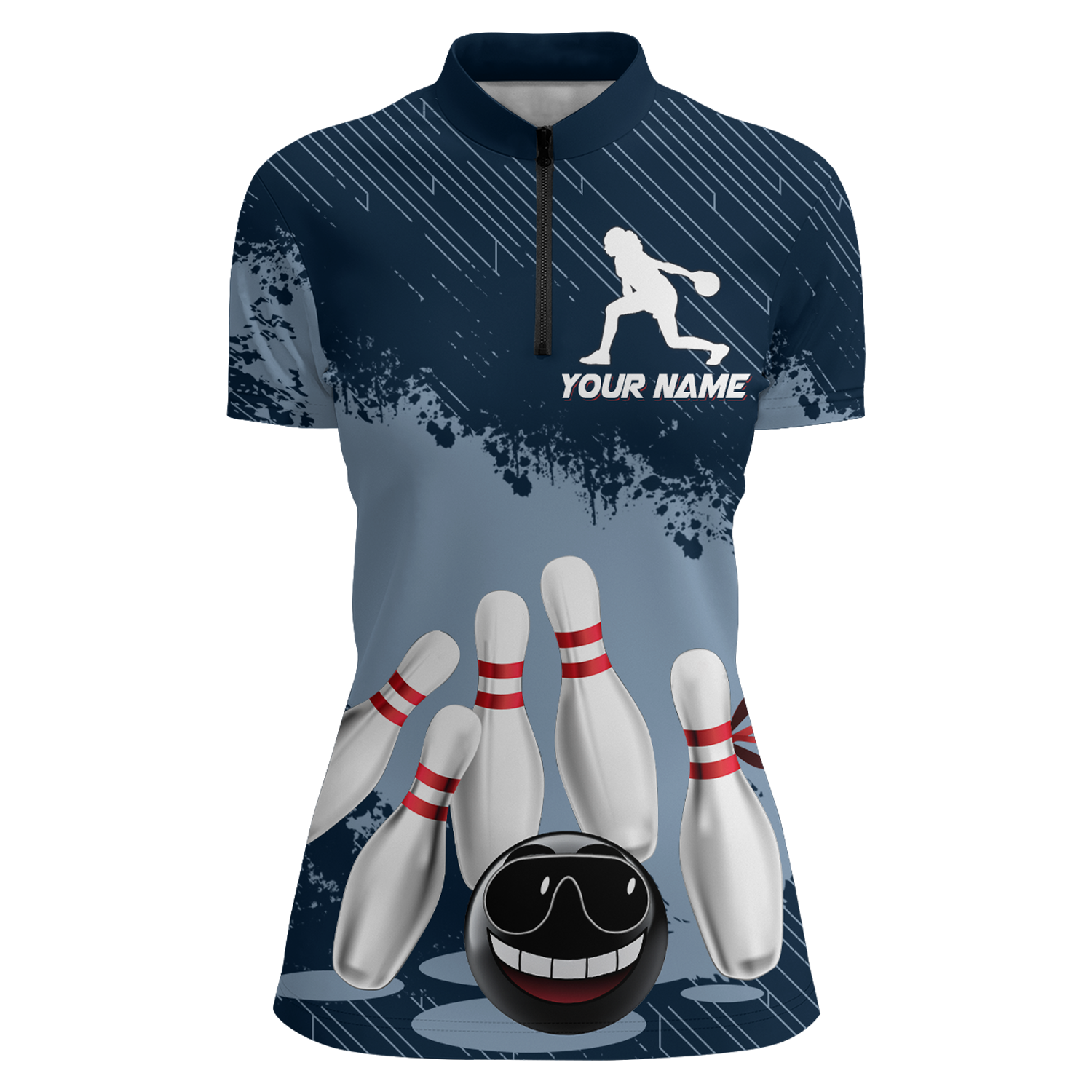 Funny Bowling Shirt For Women Custom Navy Bowling Team League Jersey Bowling 1/4 Zip Shirt BDT332
