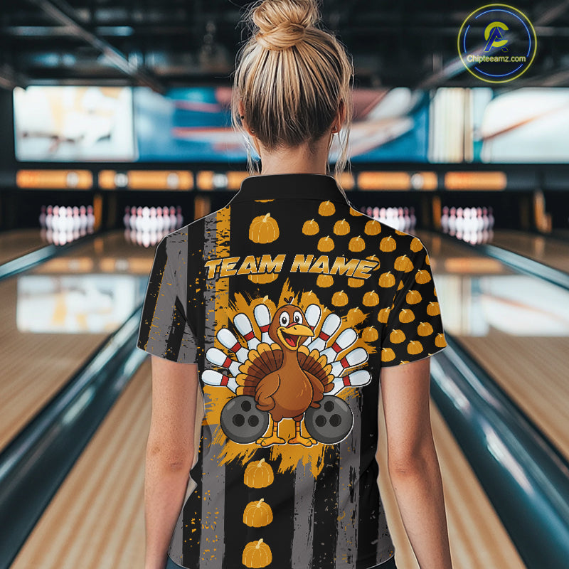 Funny Bowling Shirts For Women Pumpkin American Flag Turkey Thanksgiving Custom turkey bowl shirts NQS10943