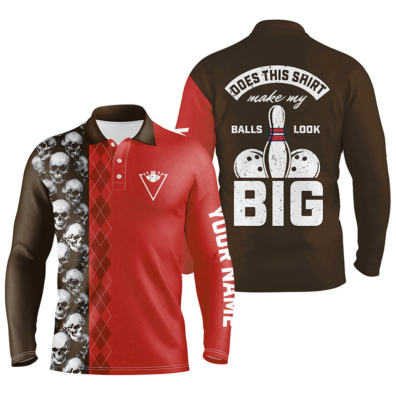 Funny red skull Bowling polo shirt for men Custom name Does this shirt make my balls look big NQS6984