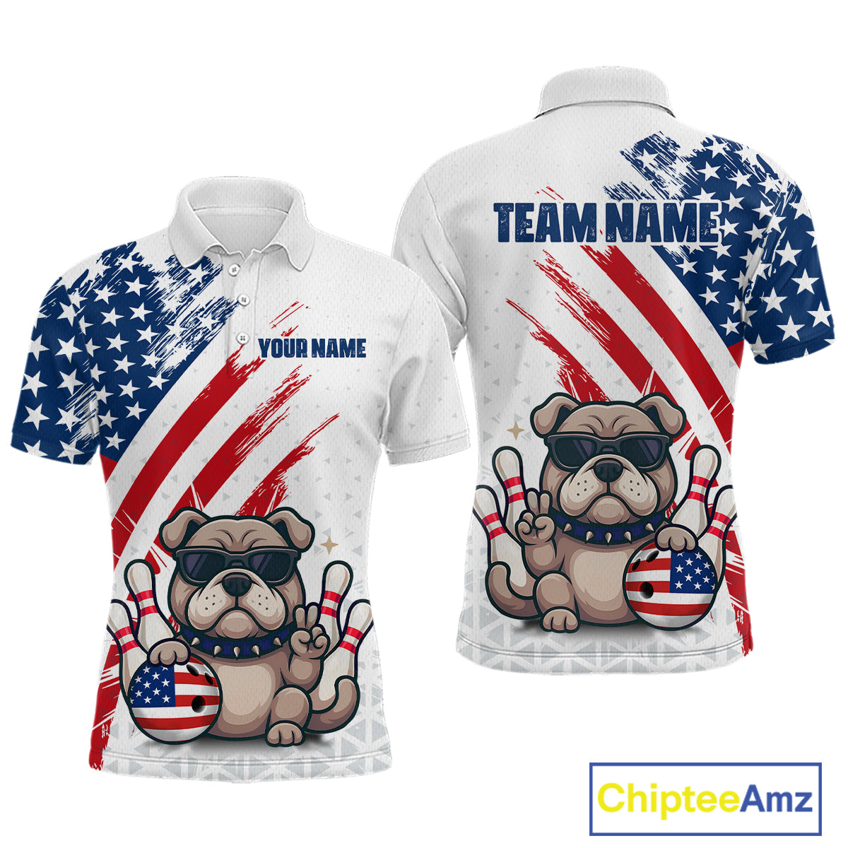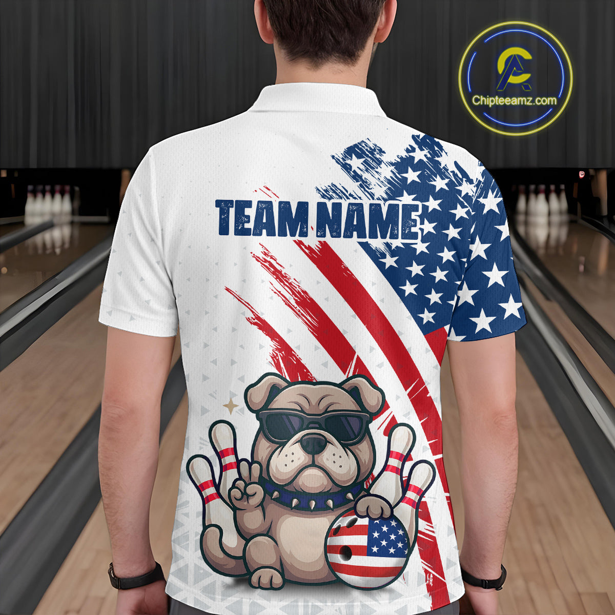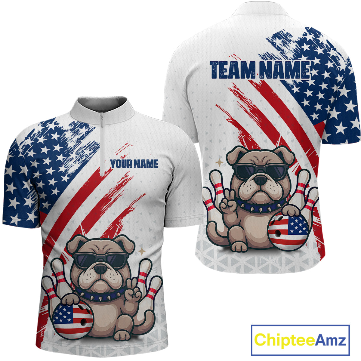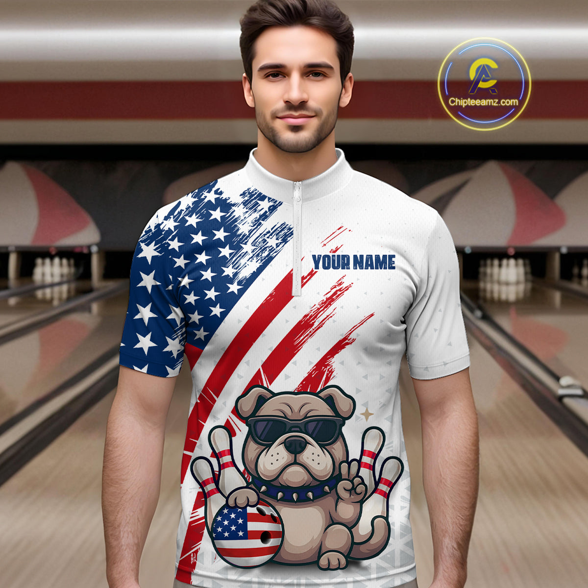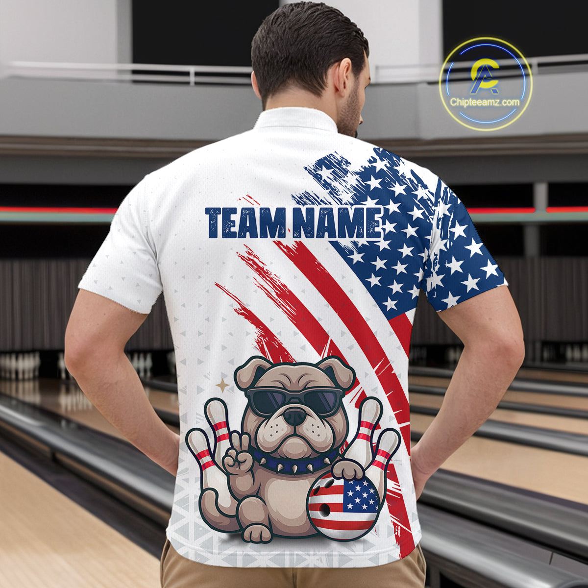Funny US Flag French Bulldog Bowling Men Polo & 1/4 Zip Shirts Bowling Team Jersey HNT88
