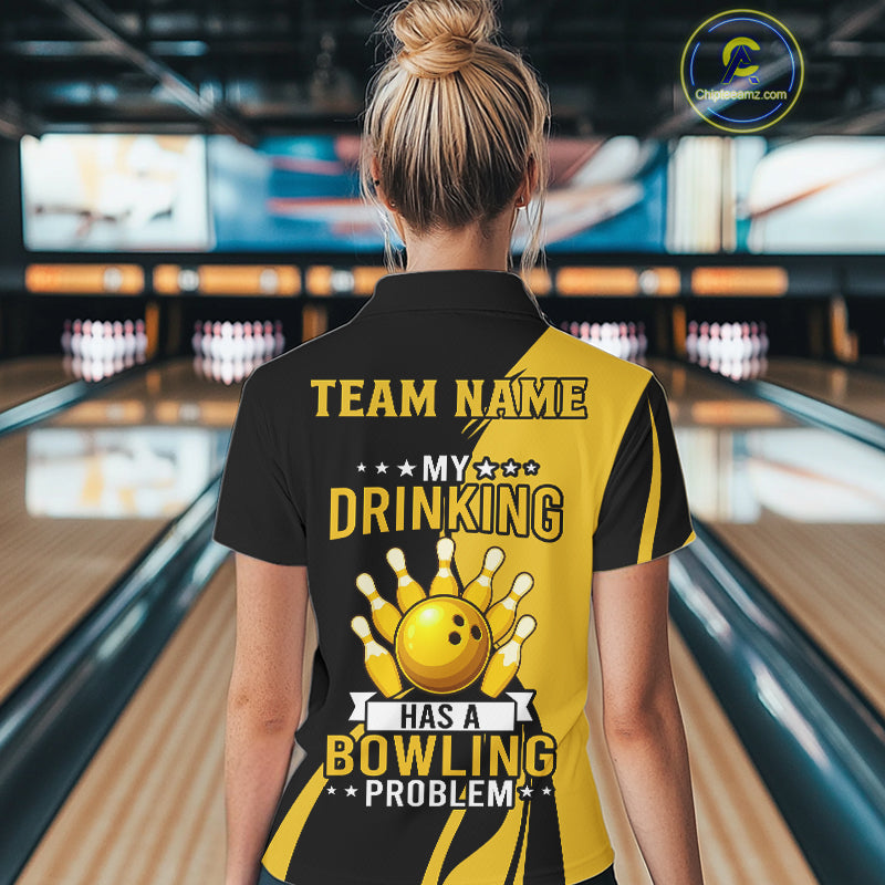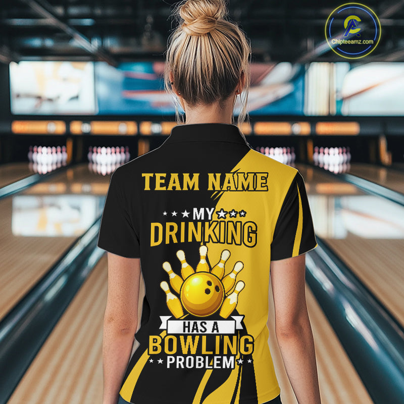 Funny yellow and black Bowling beer shirts for Women custom My drinking team has a bowling problem NQS9927
