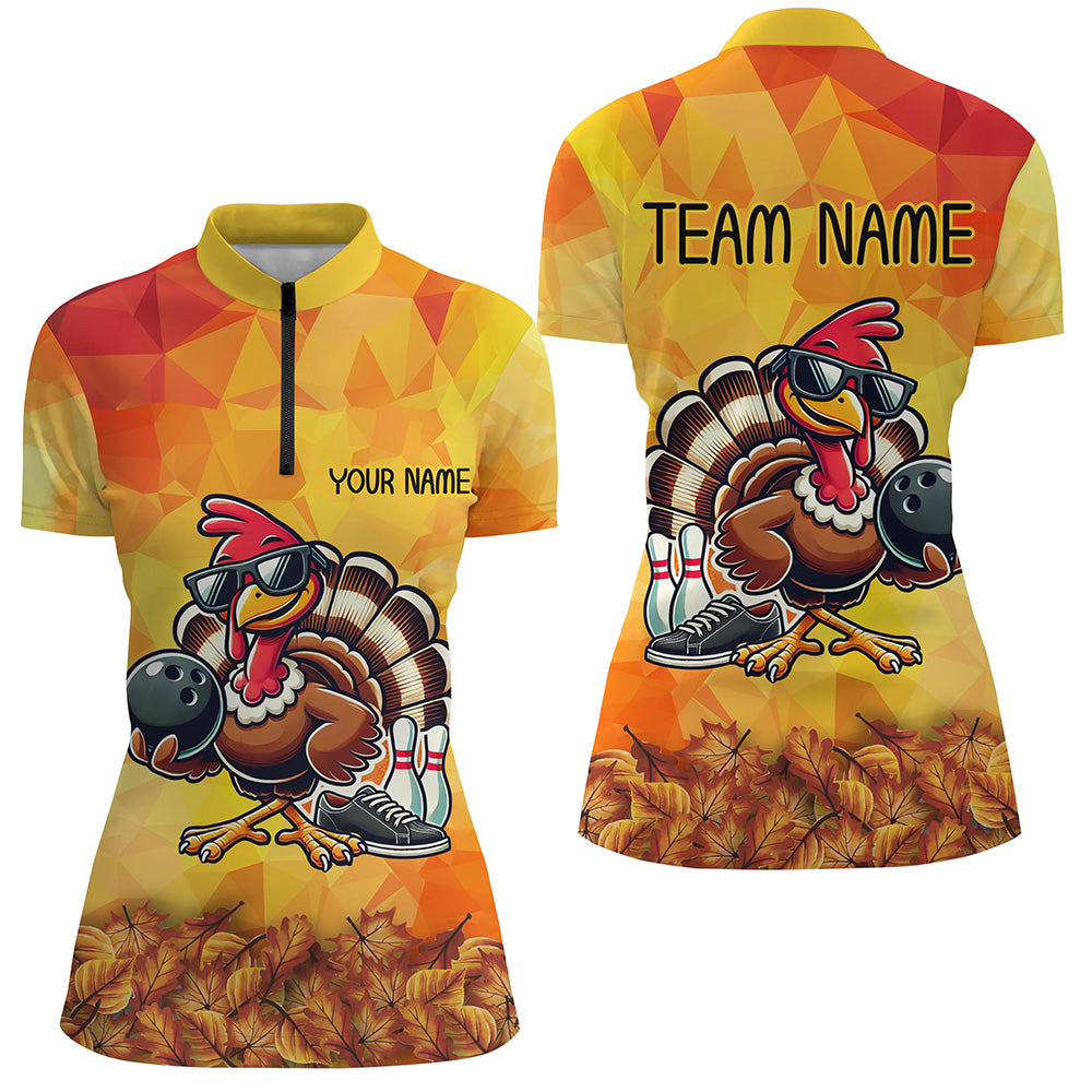 Personalized Funny Turkey Autumn Bowling Shirts For Women, Thanksgiving Bowling Shirts Team Uniform NQS8641