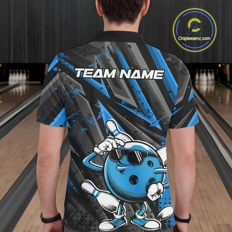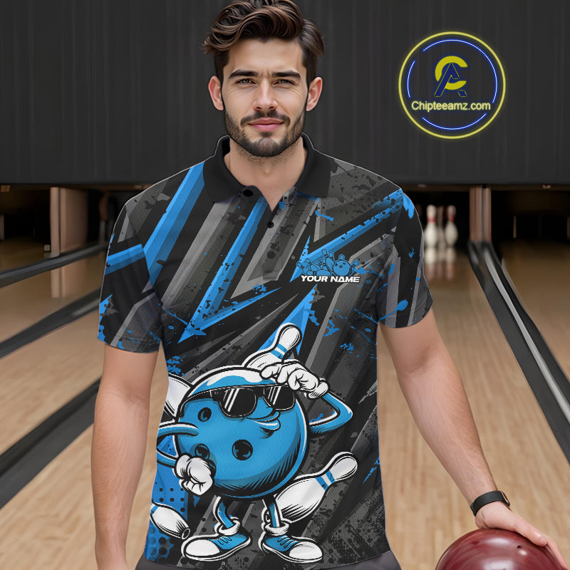 Black And Blue Funny Custom Bowling Jerseys, Cool Bowling Polo Shirts For Men IPHW9362