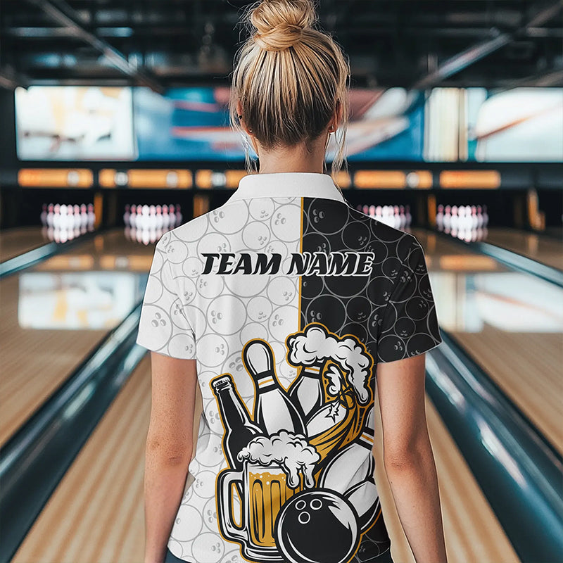 Custom Funny Bowling And Beer Team Bowling Polo Shirts For Women, Bowling Pattern Shirt IPHW8891