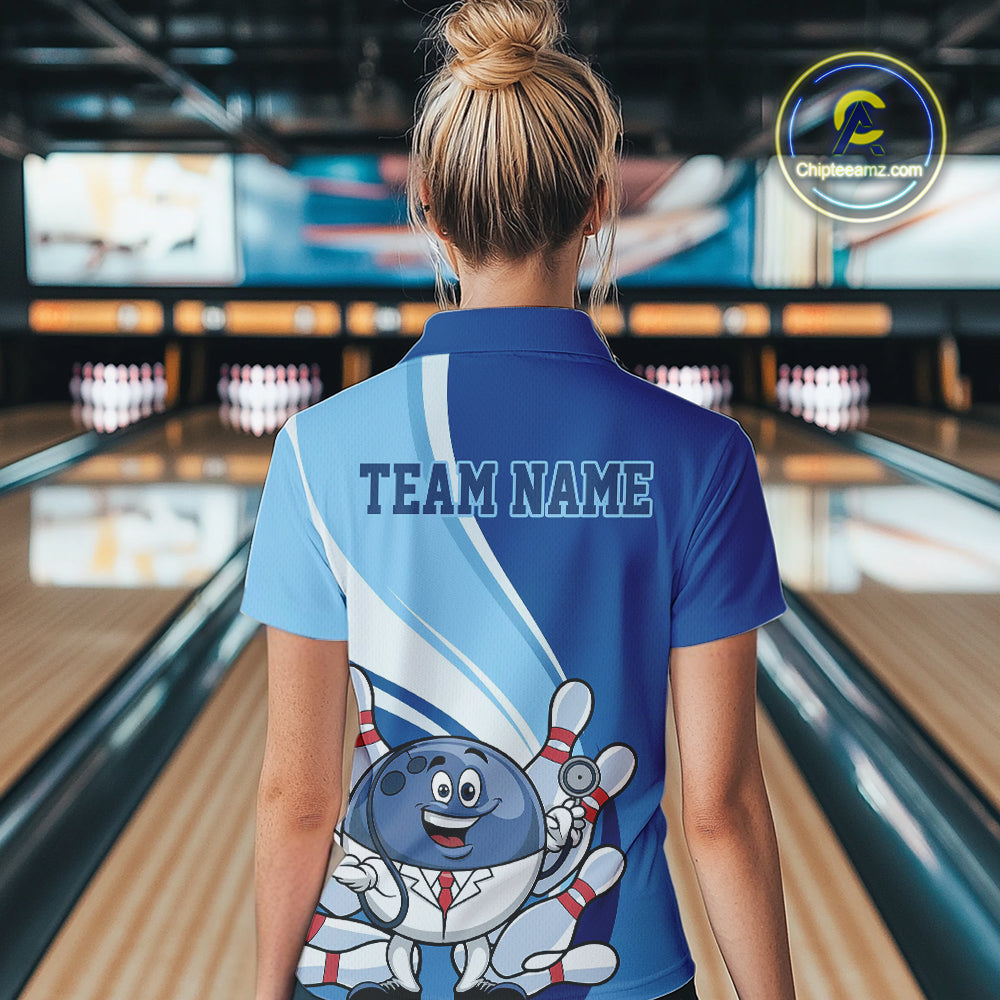 Custom Blue Doctor Bowling Polo Shirts For Women, Funny Doctor Bowling Jerseys IPHW9239