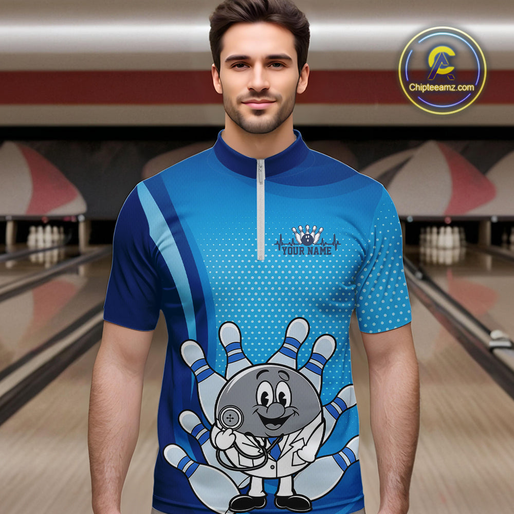 Custom Blue Doctor Bowling Quarter-Zip Shirts For Men, Funny Doctor Bowling Jerseys IPHW9235