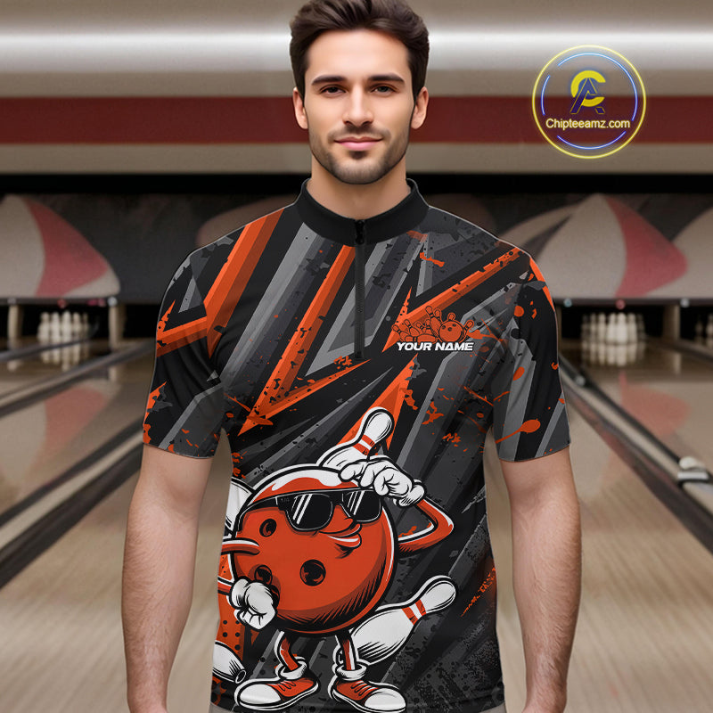 Black And Orange Funny Custom Bowling Jerseys, Cool Bowling Quarter-Zip Shirts For Men IPHW9363