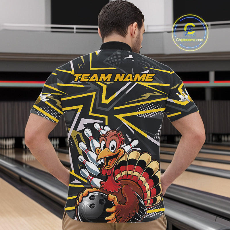 Custom Funny Turkey Bowling Jerseys, Yellow Thanksgiving Bowling Team Men Quarter-Zip Shirt IPHW9722