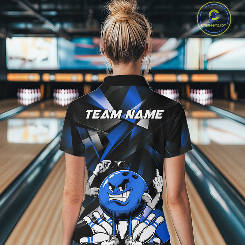Black And Blue Custom Funny Bowling Team Quarter-Zip Shirts For Women, Bowling Jerseys IPHW9357