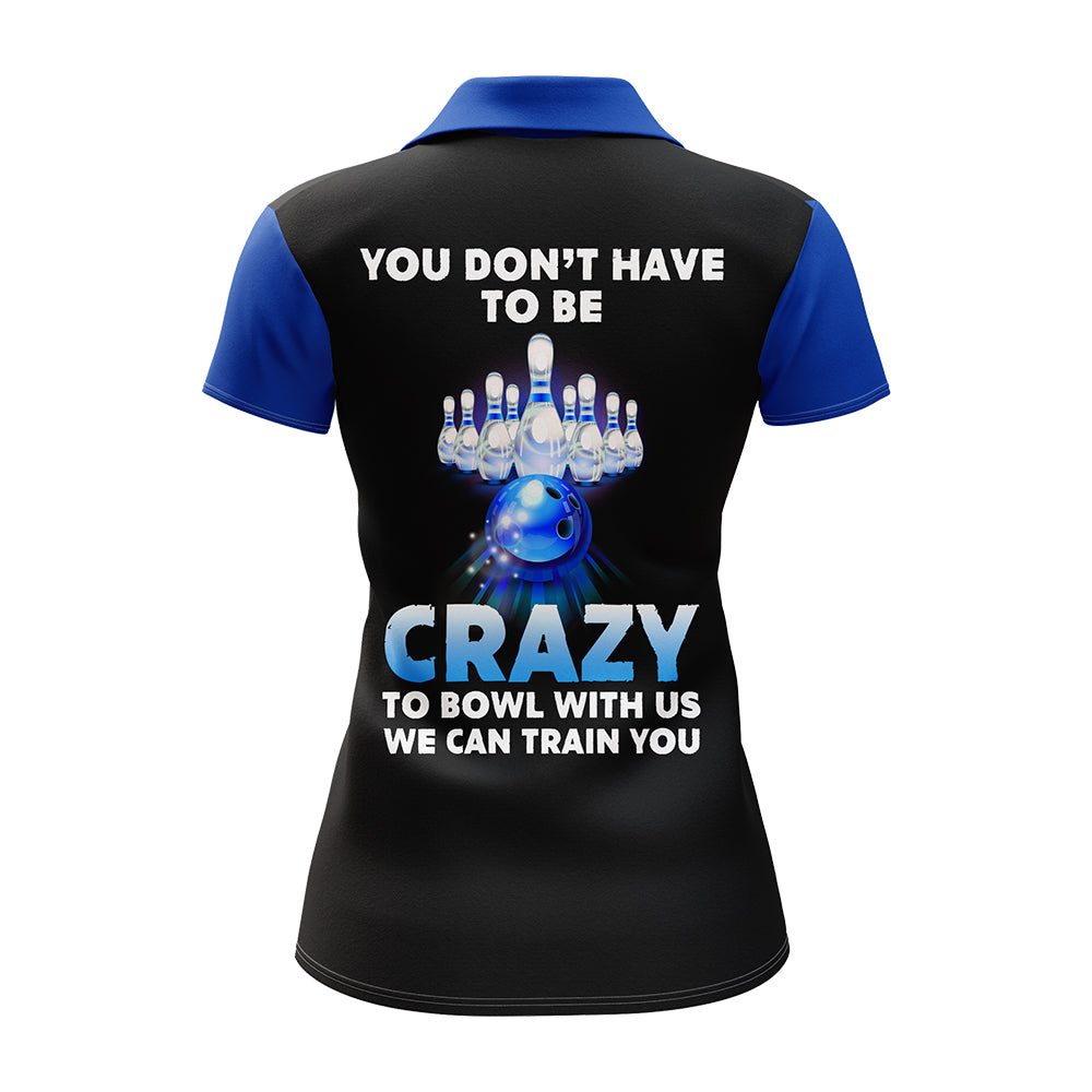 You Don't Have To Be Crazy To Bowl With Us Bowling Polo Shirt Women Funny Custom Bowling Jersey BDT165