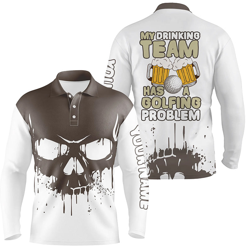 Funny golf beer skull Mens golf polo shirt custom name my drinking team has a golfing problem NQS5453