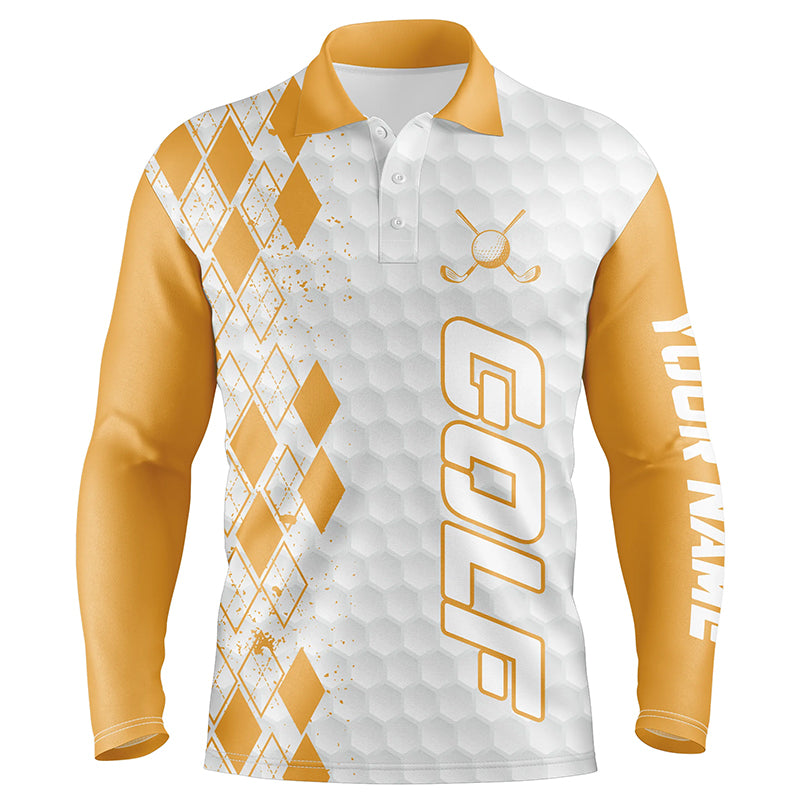 Funny Mens golf polo shirts yellow argyle pattern custom golf shirt for men, golf dad gifts NQS5265