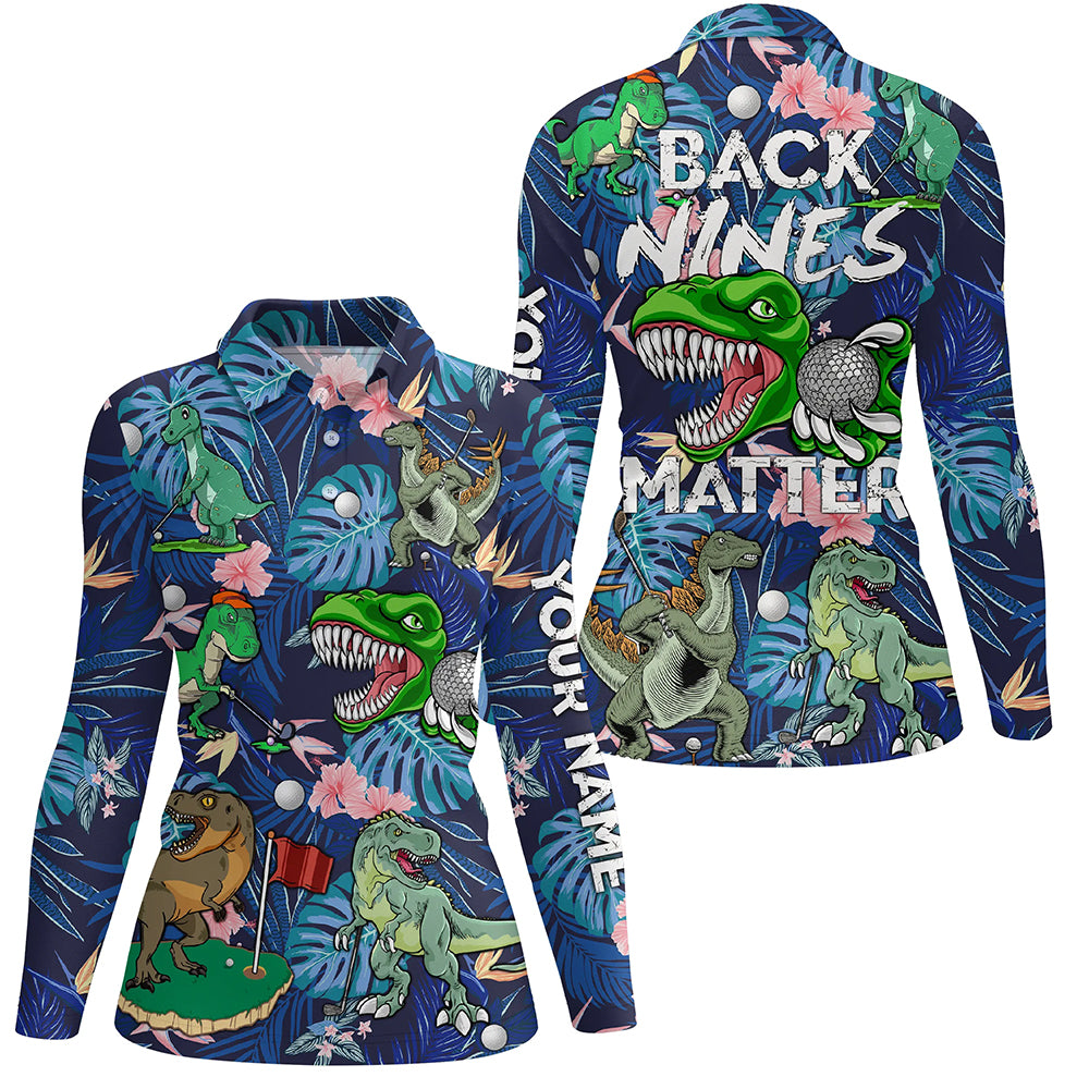 Funny Women golf polo shirt custom blue tropical flower Dinosaur pattern golf shirts back nines matter NQS6058