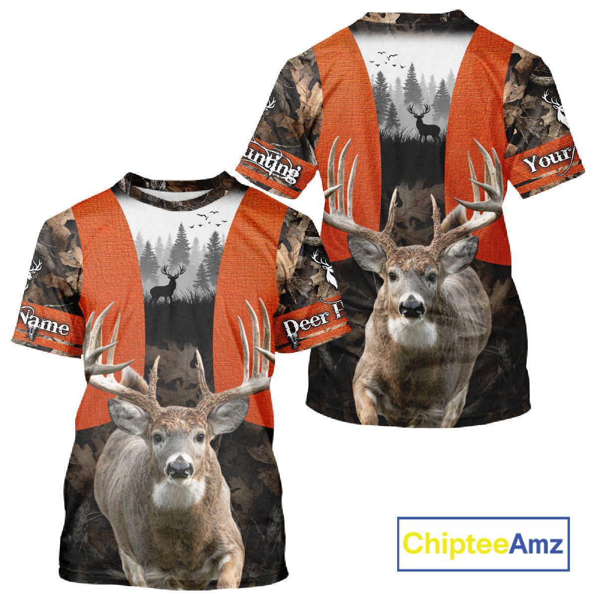 Personalized Hunting Shirt, Hunting Gear For Men – Orange Safety Camo with Big Buck NHT343