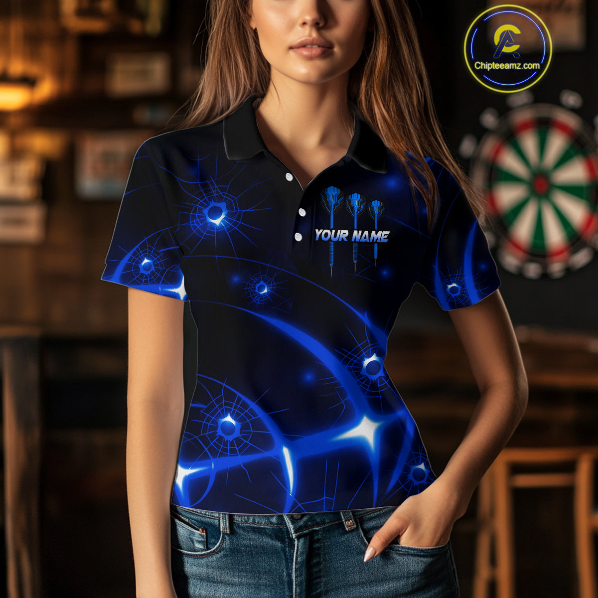 Lightning Dart Arrow Custom Blue Darts Polo Shirt For Women - Darts Team Jersey NYN0718