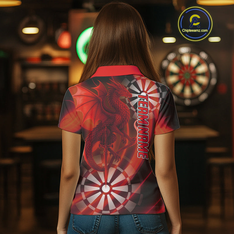 Dragon & Dartboard Custom Darts Polo Shirt For Women - Personalized Name & Team NYN0722