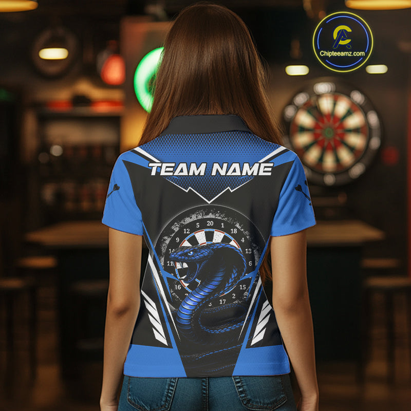 Azure Cobra & Dartboard Women's Darts Polo Shirt - Custom Name For Darts Jersey NYN0753