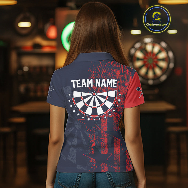 US Flag Grunge Star Dartboard Women's Darts Polo Shirt - Custom Name For Players NYN0755