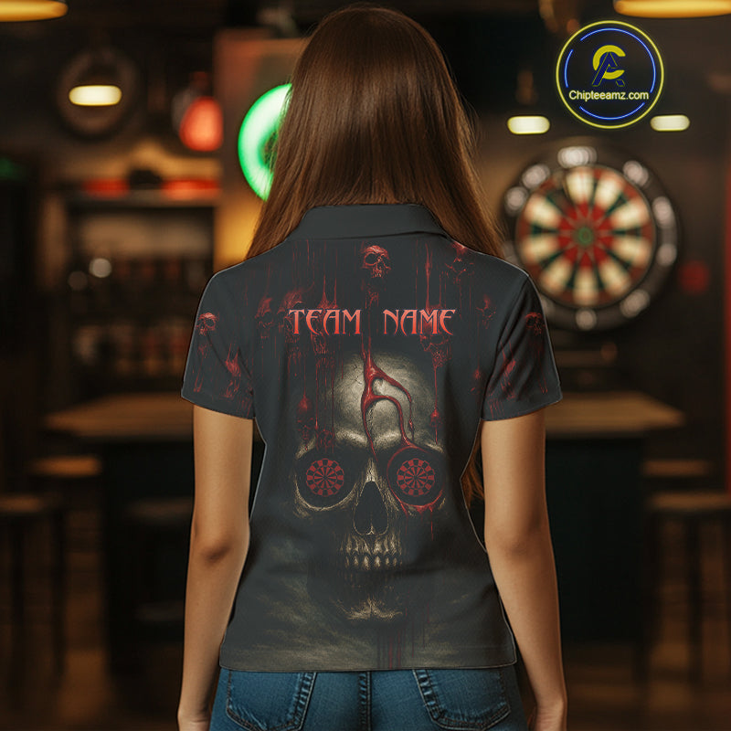 Custom Women's Darts Polo Shirts Red Dripping Blood Skull For Darts Jersey NYN0775