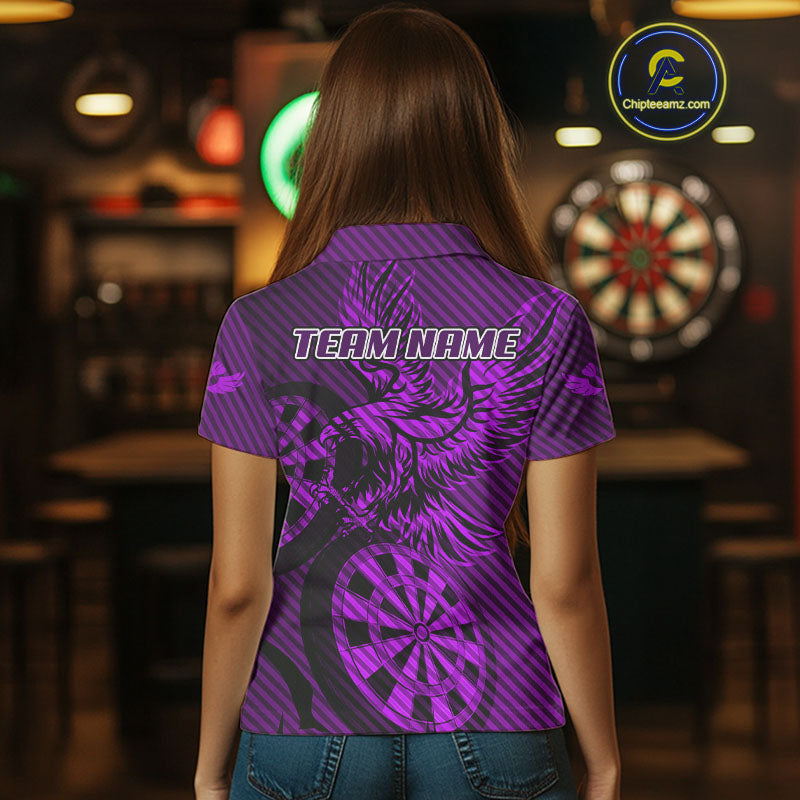 Custom Eagle & Dartboard Purple Stripes Dart Polo Shirts For Women, Dart Team Jerseys NYN0784