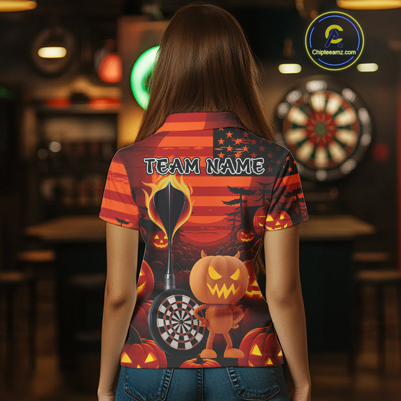 Pumpkin Play Darts Custom Halloween Dart Polo Shirts For Women, Funny Dart Jerseys NYN0807