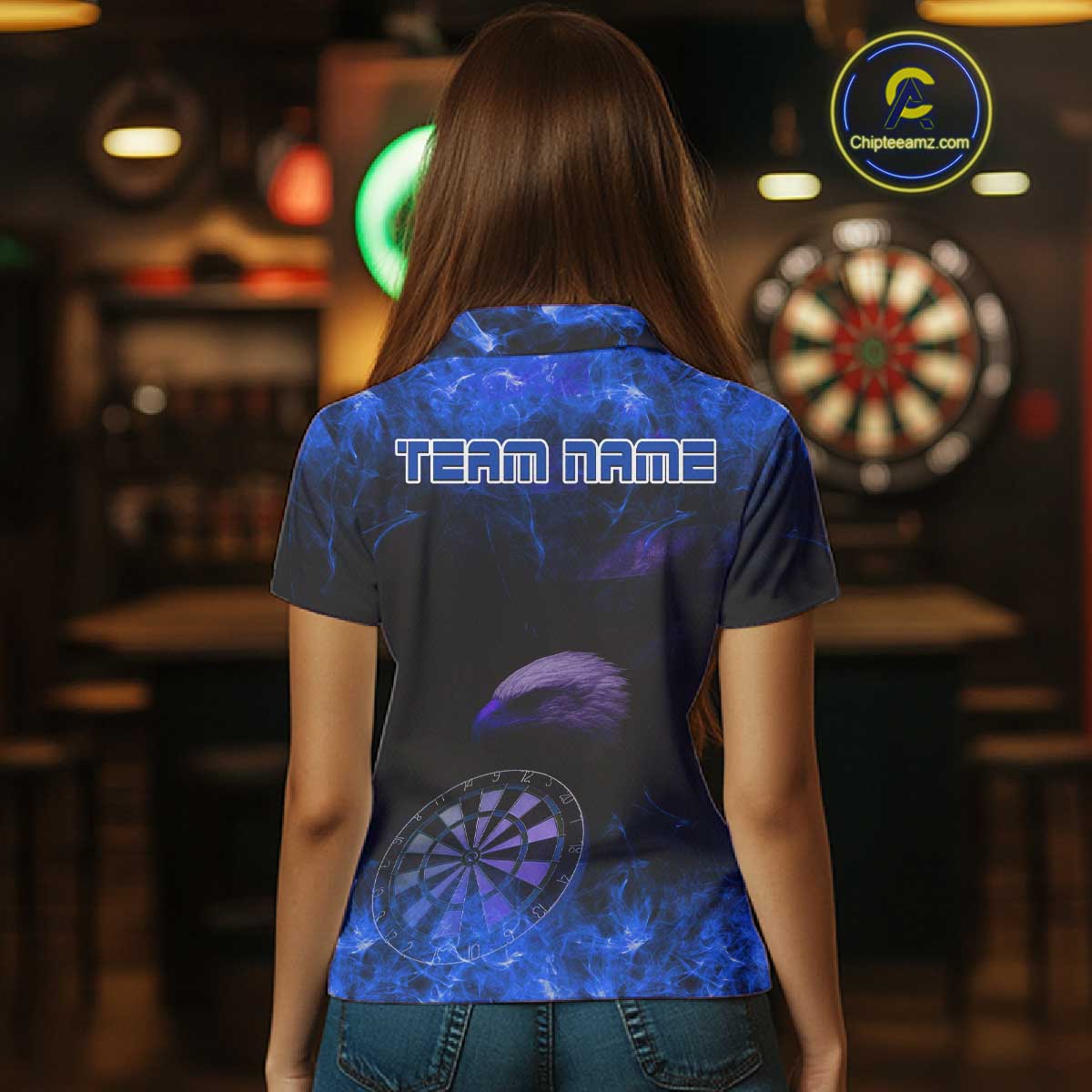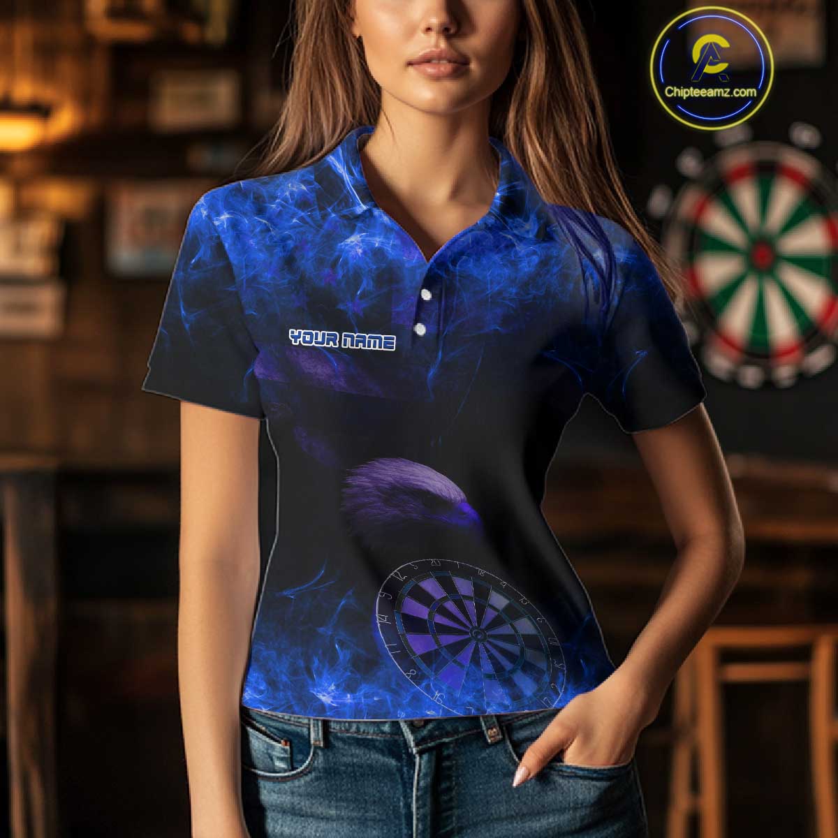 Custom Black And Blue Flames Eagle Dartboard Darts Polo Shirt For Women Outfit Darts Jerseys NYN0946