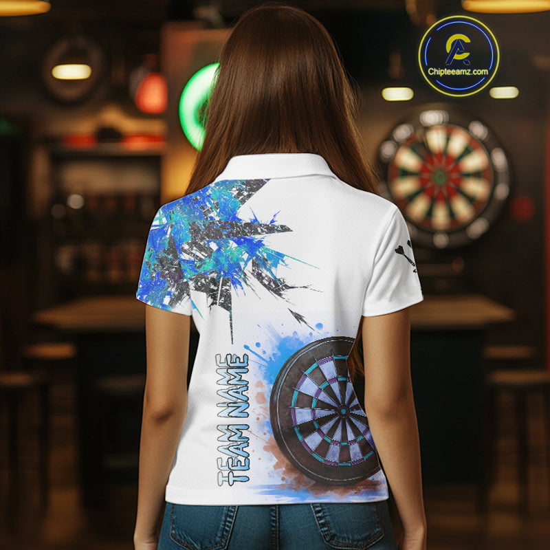 Custom Grey And Blue Splashed Dartboard Darts Polo Shirt For Women Darts Team Jerseys NYN0947