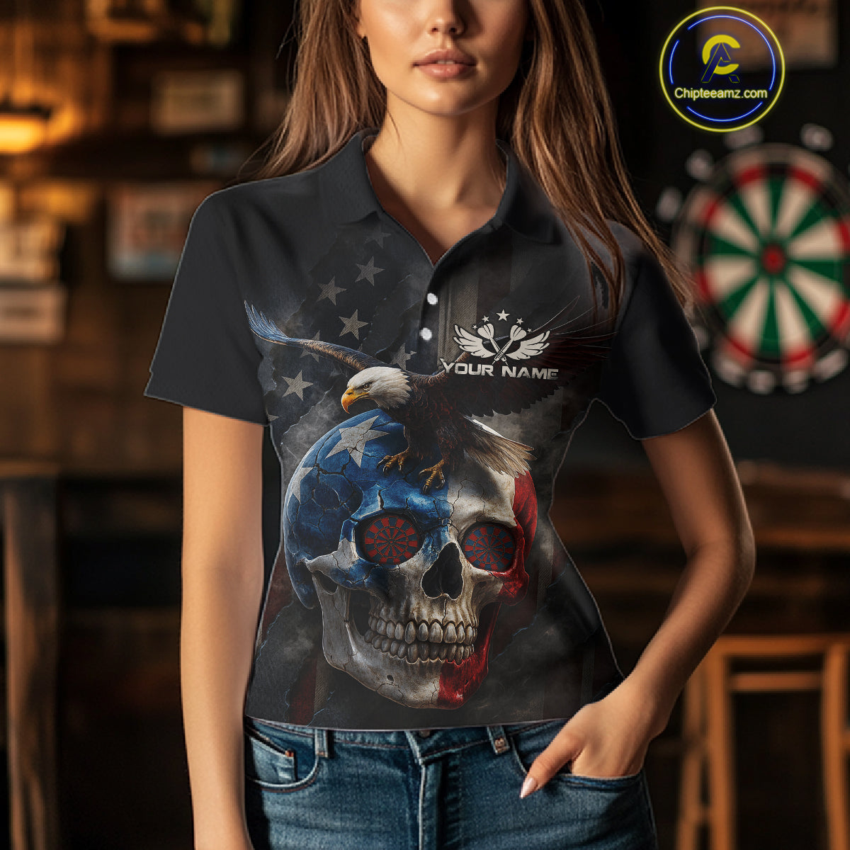 Custom Smoke Skull Eagle Patriotic Dart Shirt For Women US Flag Polo Dart Team Jersey NYN1336