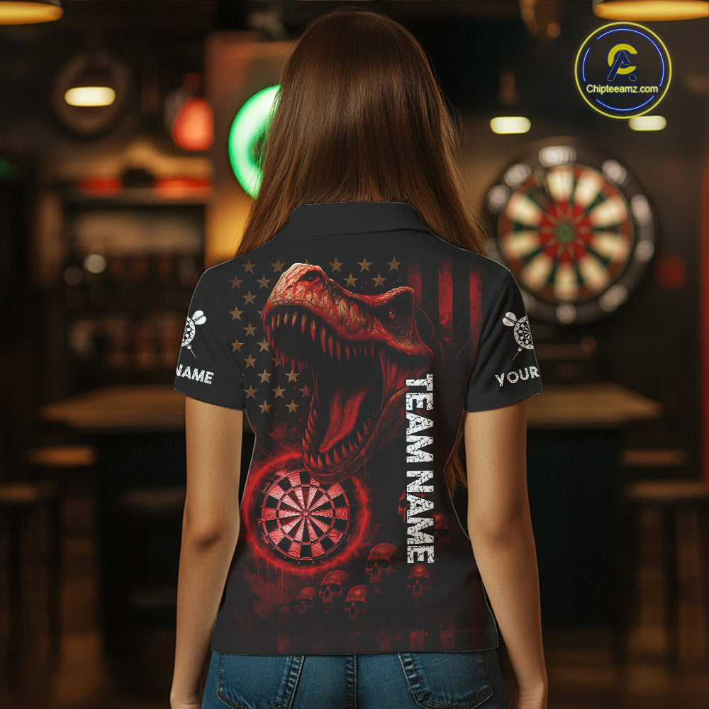 Custom Skull Red Dinosaur Flame Dartboard Polo Dart Shirt For Women, Dart Team Jerseys NYN1356