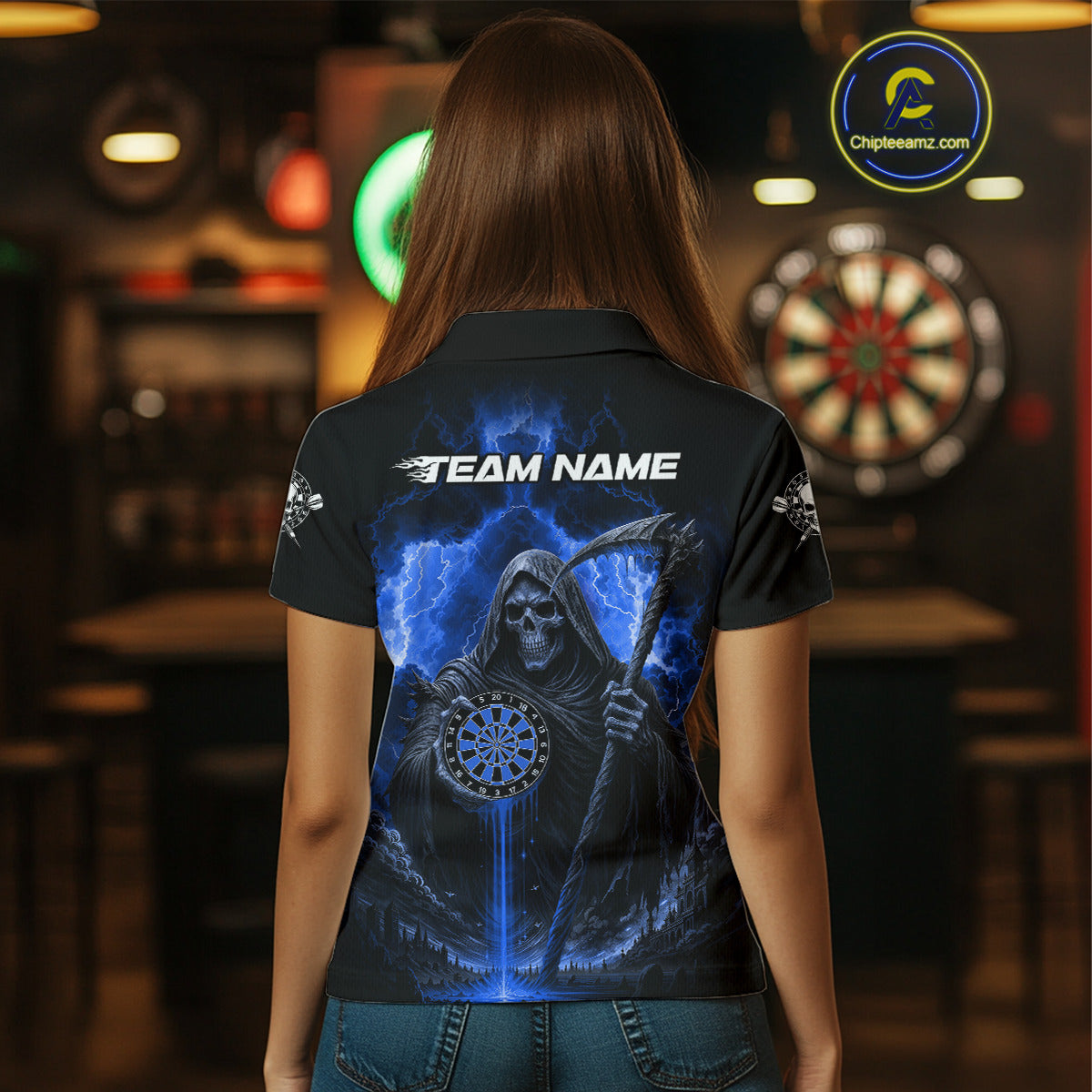 Custom Lightning Blue Grim Reaper Dartboard Dart Polo Shirt For Women Dart Team Jerseys NYN1419