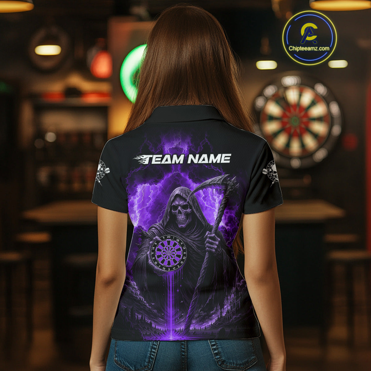 Custom Lightning Purple Grim Reaper Dartboard Dart Polo Shirt For Women Dart Team Jerseys NYN1420