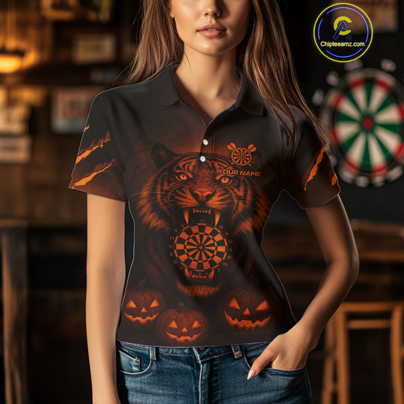 Custom Pumpkin Tiger Horror Halloween Dart Polo Shirt For Women Dart Tournament Jerseys NYN1421