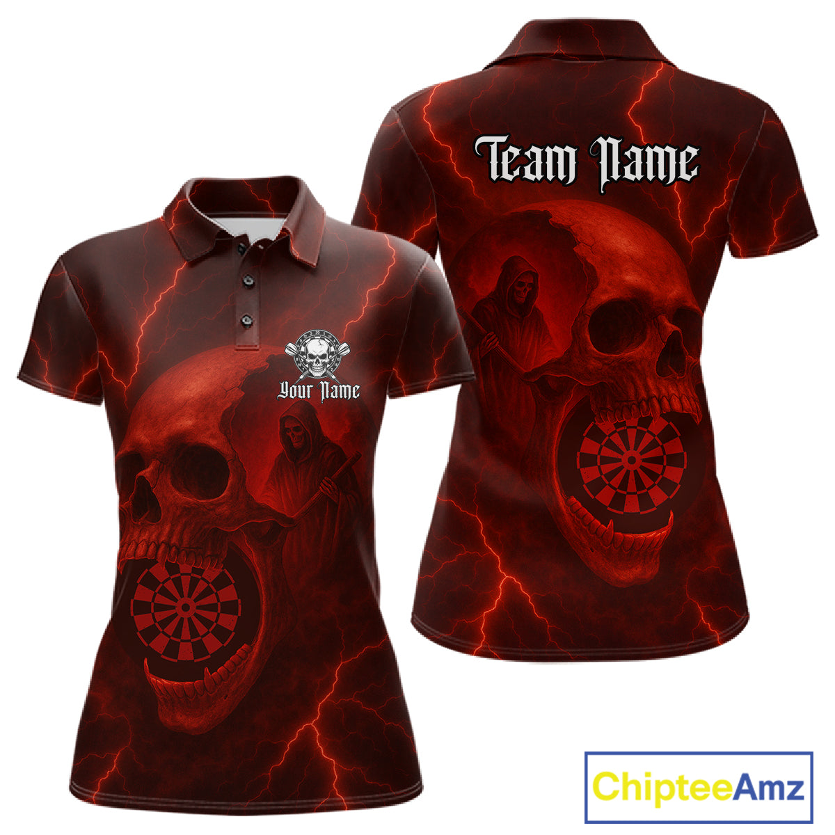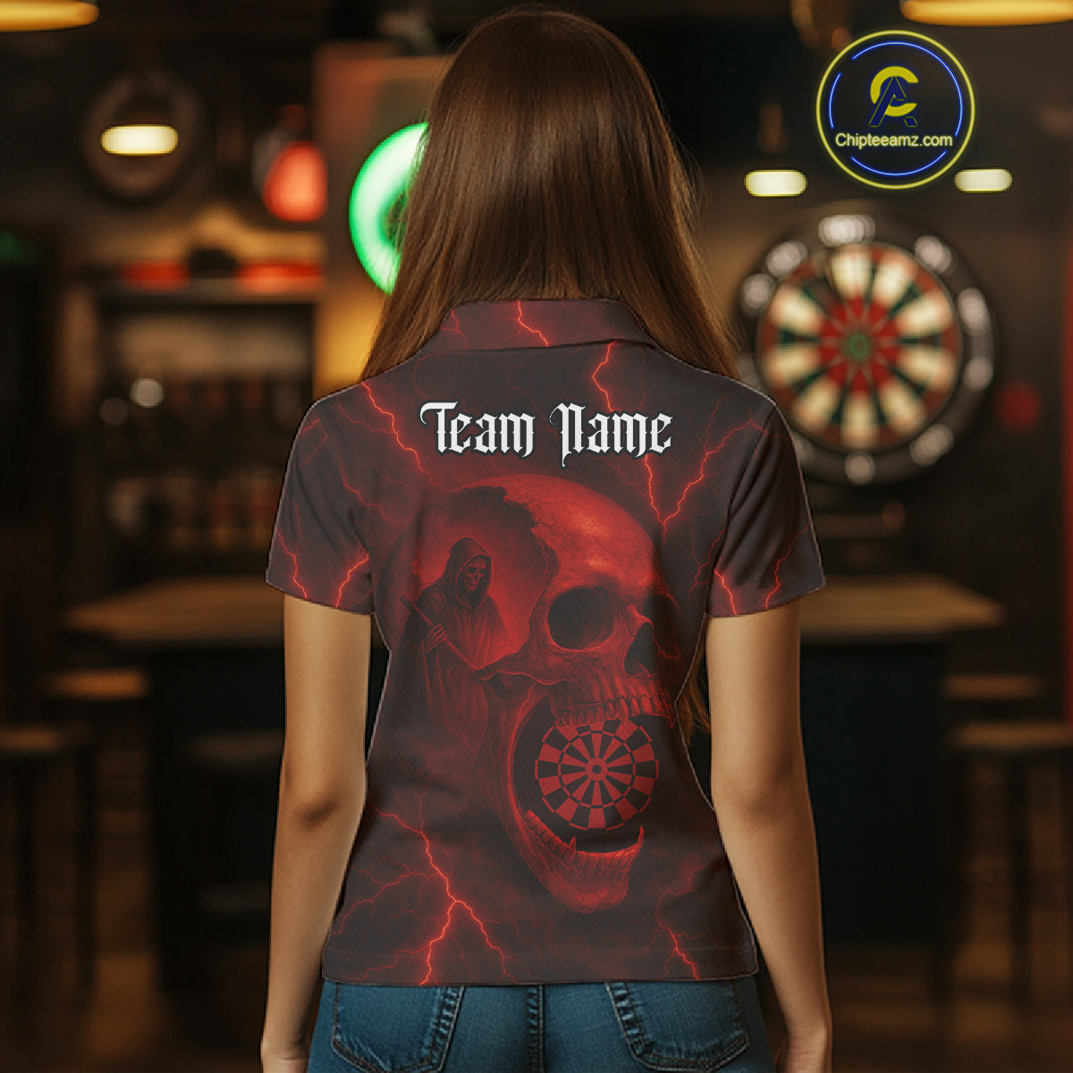 Custom Lightning Red Grim Reaper Dartboard Women Dart Polo Shirt Skull Dart Team Jersey NYN1444