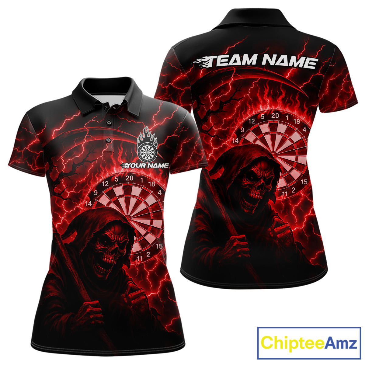 Custom Lightning Red Grim Reaper Women Dart Polo Shirt Flames Dart Tournament Jersey NYN1448