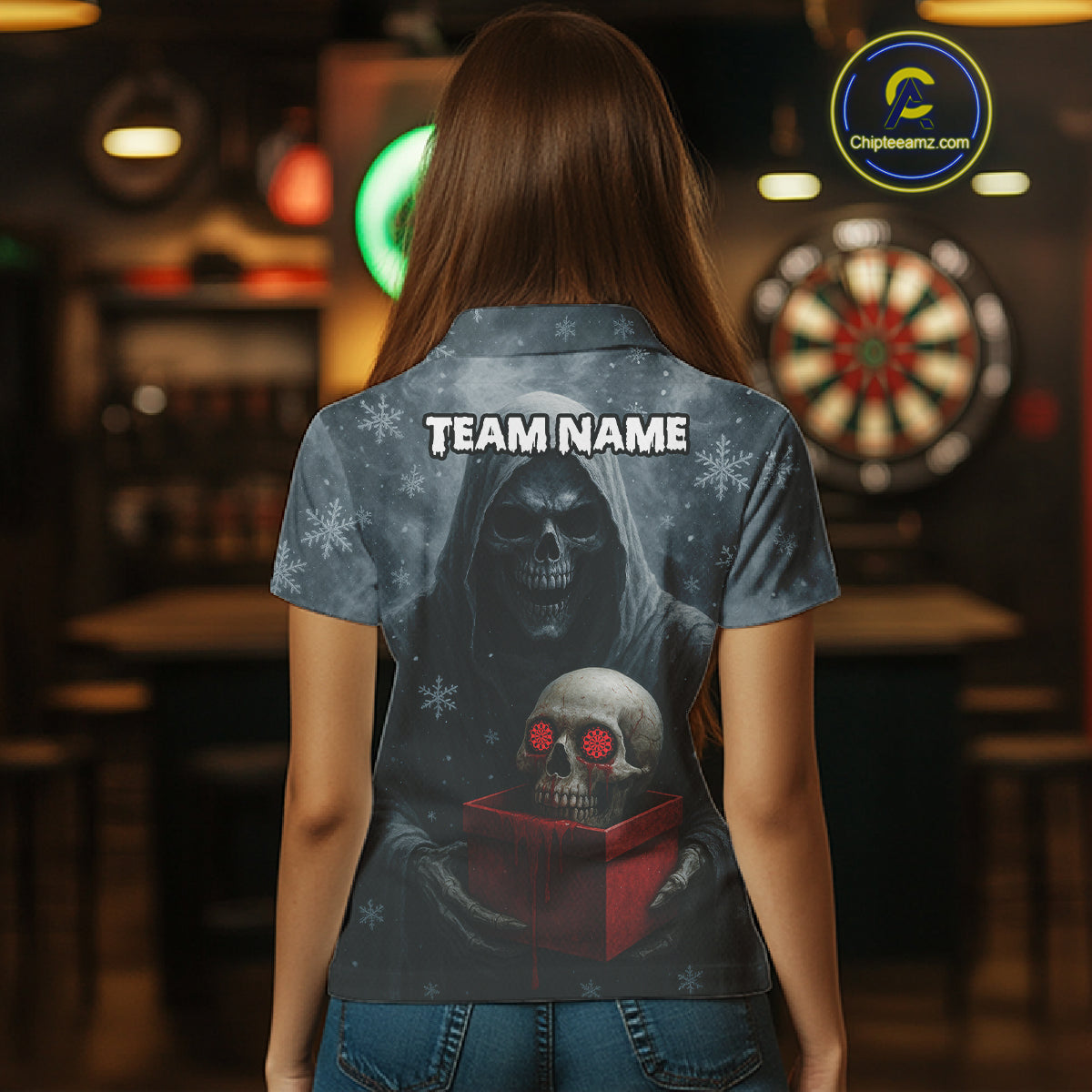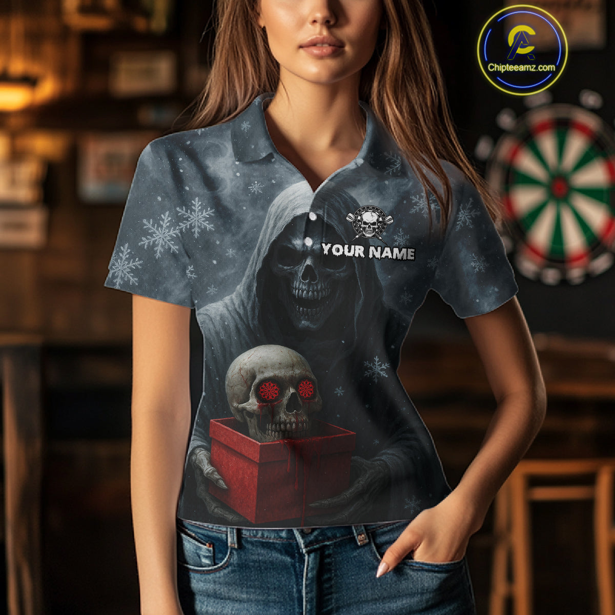 Custom Red Dripping Grim Reaper Creepy Christmas Dart Polo Shirt For Women Xmas Dart Jersey NYN1476
