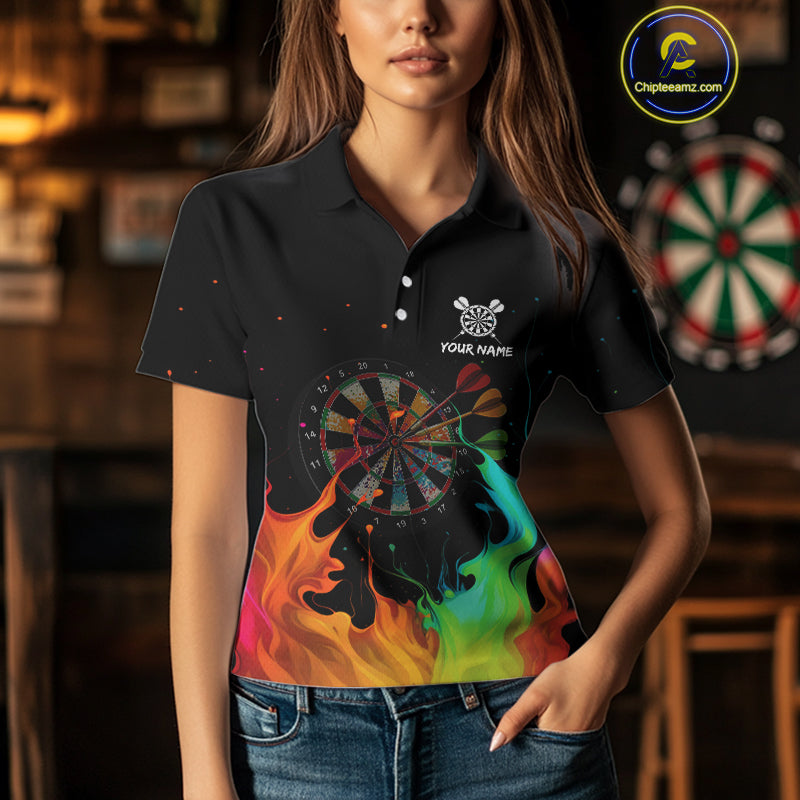 Custom Splatter Dartboard 3D Funny Dart Polo Shirt For Women Colorful Dart Team Jerseys NYN1526