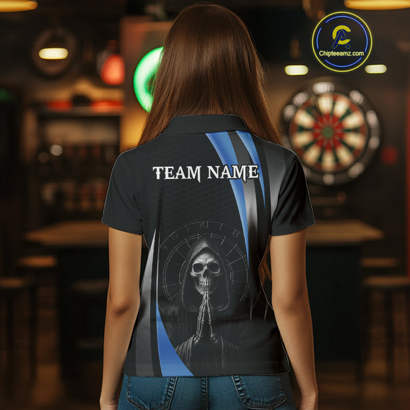 Custom Blue Grim Reaper Dartboard Dart Women Polo Shirt Skull Dart Team Jerseys NYN1530