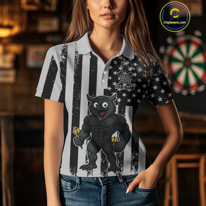 Custom Grunge Grey Owls Dartboard Funny Dart Team Patriotic Women Polo Shirt NYN1536