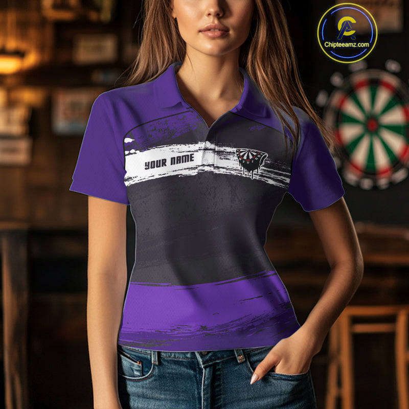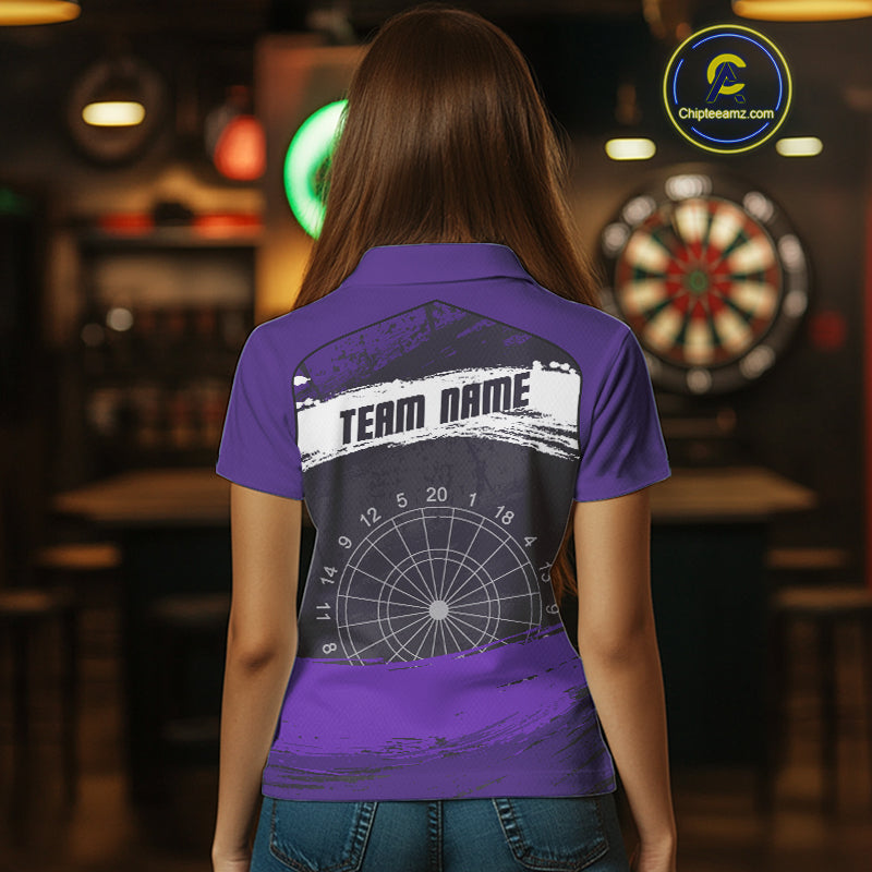 Custom Grunge Black And Purple Dripping Dartboard Dart Team Women Polo Shirt NYN1549