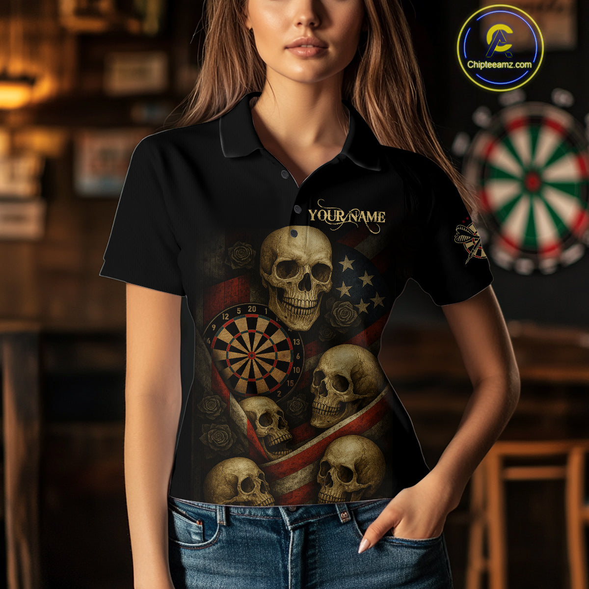 Custom Grunge Skull Dartboard Patriotic Dart Women Polo Shirt US Flag Dart Jerseys NYN1562