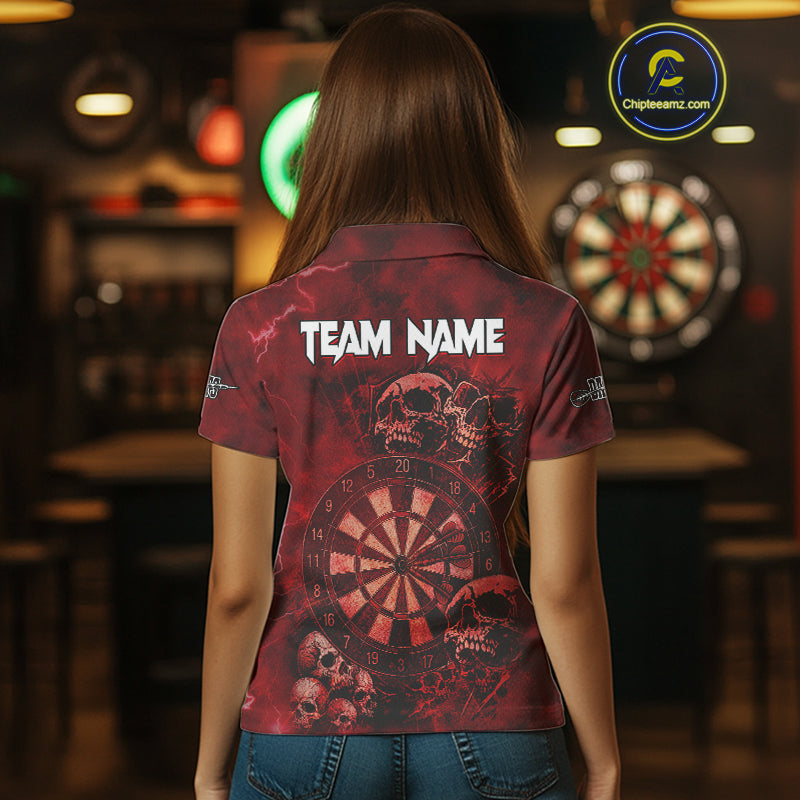 Custom Grunge Red Dartboard Multi-Skull Dart Women Polo Shirt Dart Team Jerseys NYN1622